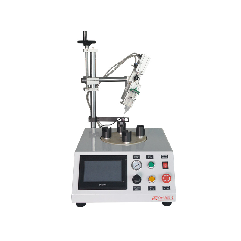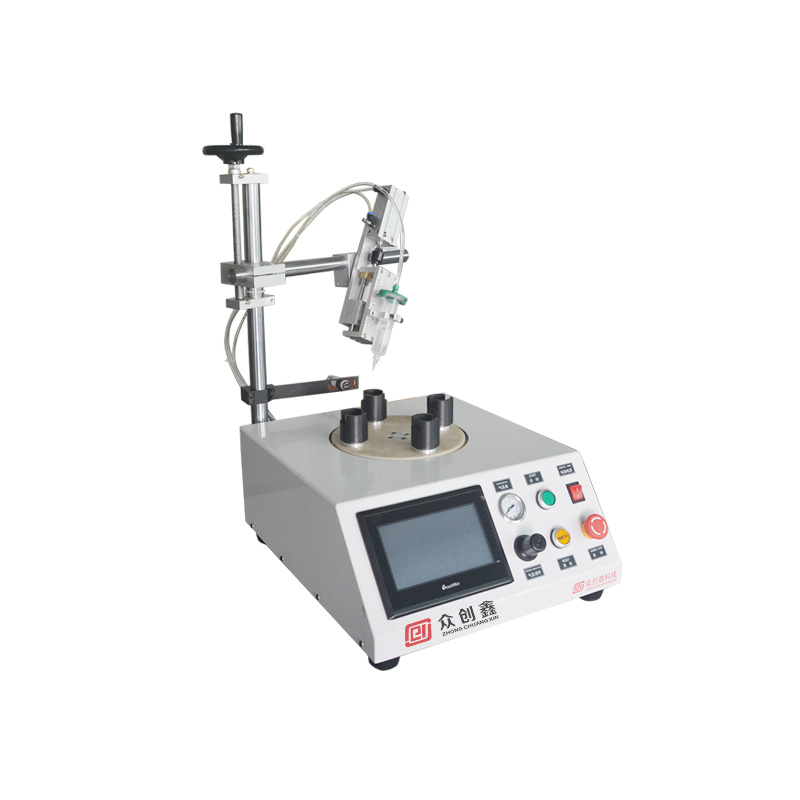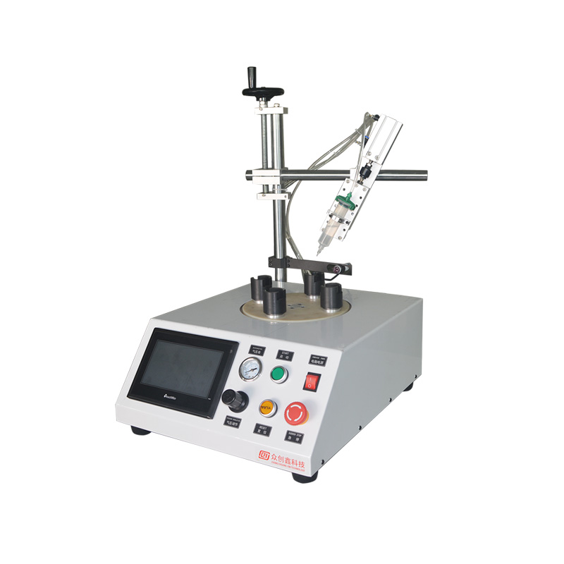 3、四工位分度圓盤設計,效率大幅提高,產能可達1500支/小時;程序設定可整圓點膠,也可分段圓弧點膠、單點點膠;